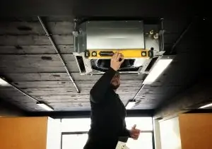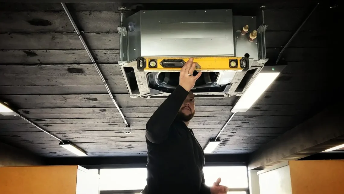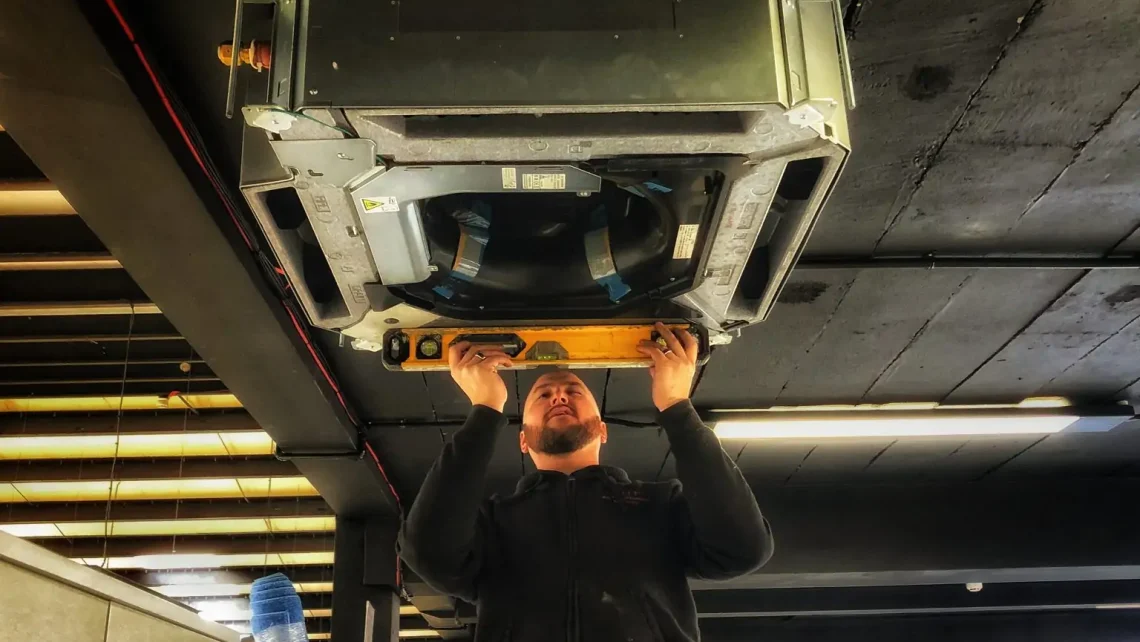 • Installed threaded rods from which the ceiling cassette units were suspended.